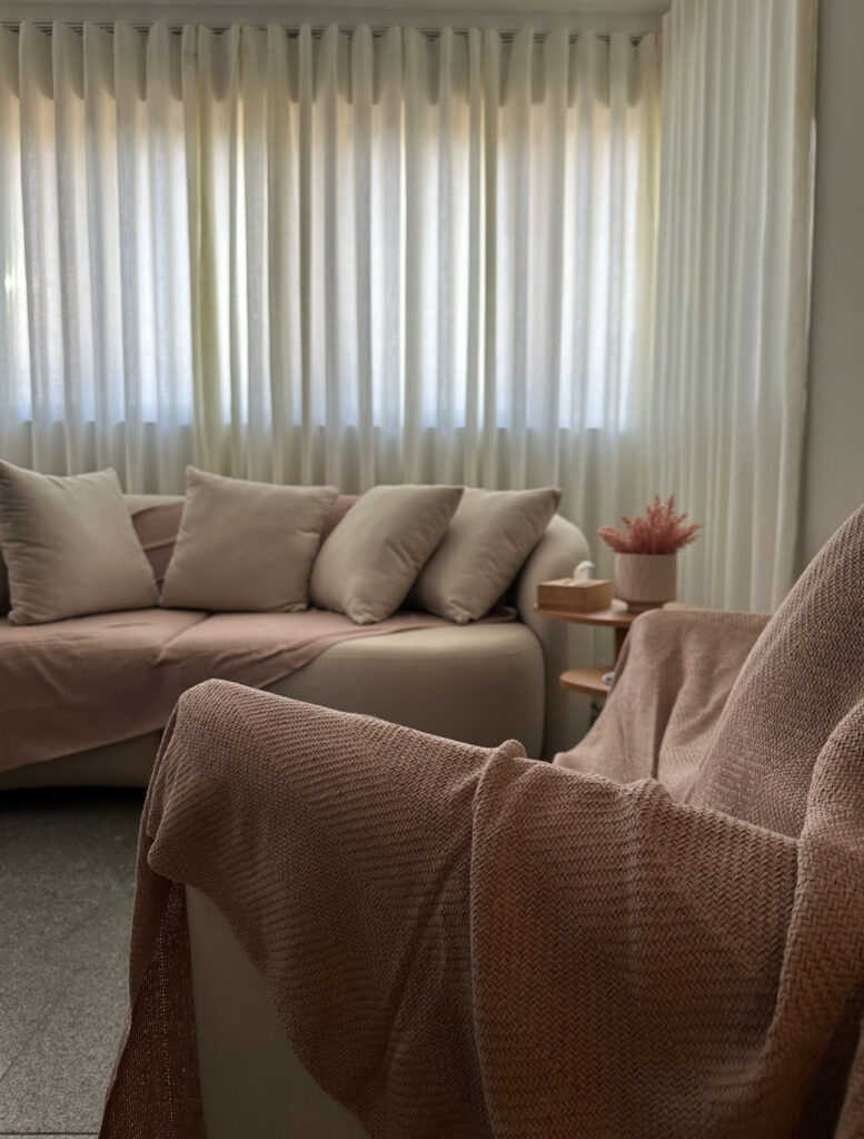 Meu consultório está localizado na cidade de Ubá (MG), em um espaço acolhedor e preparado especialmente para favorecer o autocuidado. Para quem é da cidade ou reside próximo, é uma boa possibilidade.
